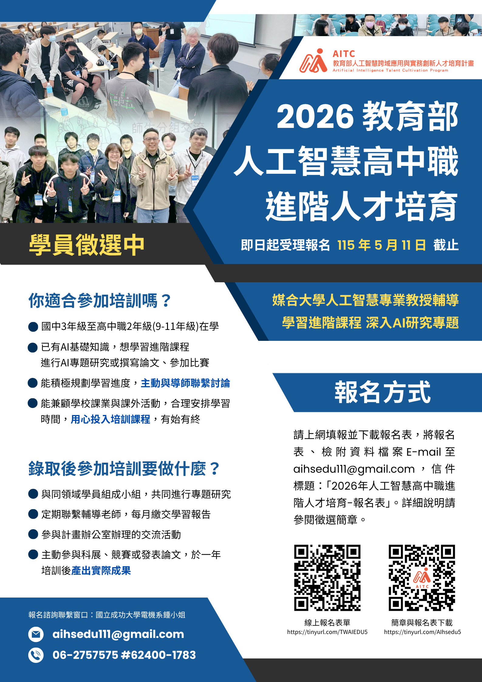 簡章與報名表下載| https://tinyurl.com/AIhsedu5
