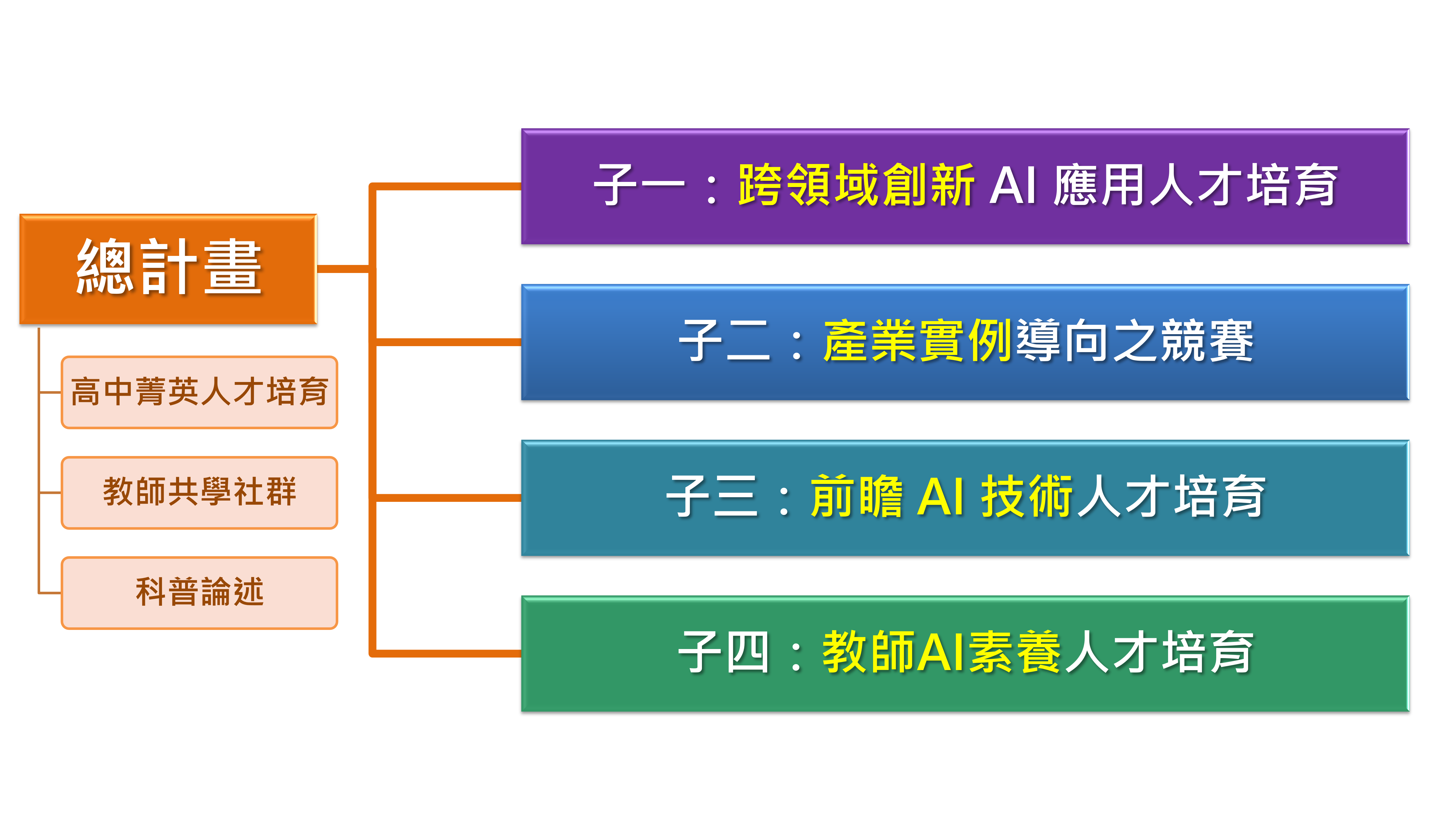 從107年起,教育部推動AI 教育,執行人工智慧技術及應用人才培育計畫,除了重視訓練大專院校的人工智慧人才,也推動中小學AI基本教育,107年起更增加了AI科普教育的規劃。 本計畫以培育未來AI人才為核心,學生、老師和一般大眾為對象進行AI的科普推廣活動。從「網路科普資訊與科教資源的提供」和「辦理科普活動」著手,透過多元科普活動與多媒體教材,提供跨領域新興科技探究課程的社會學習機會。